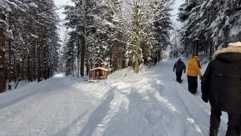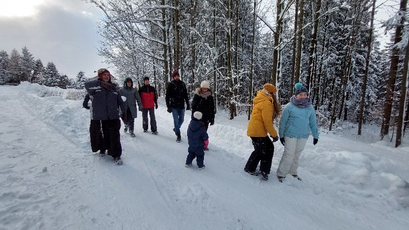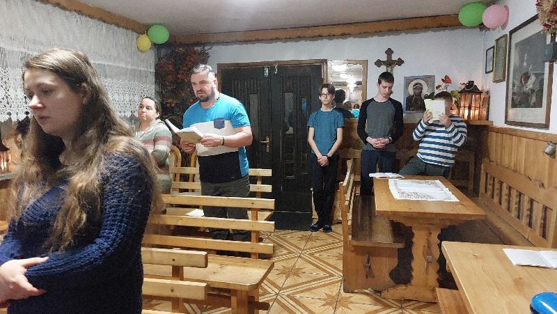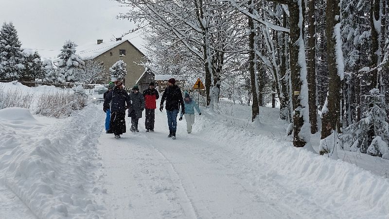 Starsi Rycerze zapragnęli spotkać się na dłużej niż 2 godz. Dlatego też wybraliśmy się na weekend do Istebnej Połom. W piątkowy wieczór rozpoczęliśmy pobyt wspólną kolacją oraz mszą świętą. Po rannej modlitwie i śniadaniu zawiązaliśmy wspólnotę. Obecni byli: Br. Zbigniew, Marcin, Adam, Janek, Ola, Marta, Marianka, Zuzia, Ania i Artur z Bartkiem, Julia z Emilką, Paweł i Alicja z Marysią, Martą i Klarą, s. Ania, s. Leokadia (cała 20-stka) Na dworze przepiękna sceneria, świeży śnieg, drzewa ubrane w przepiękne czapy. Zachęta do dziennych i nocnych spacerów i to wykorzystaliśmy. Część nawet skorzystała ze zjazdów na nartach. Był czas na Sakrament Pokuty, Adorację NS, Koronkę do Miłosierdzia Bożego, Liturgię Godzin, wspólne śpiewanie, przeważnie po mszy św. W niedzielę o godz. 12.00 Eucharystia, potem obiad, rozmów nie było końca, kawa i słodkości. Koronką zakończyliśmy ten wspólny weekend. Chociaż to tylko 48 godzin, ale każda godzina upływała w POKOJU i RADOŚCI. Cieszymy się wspólnie spędzonym czasem, w tym bardzo gościnnym miejscu, za co gorąco dziękujemy gospodarzom Marioli i Władkowi Procnerom.