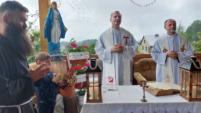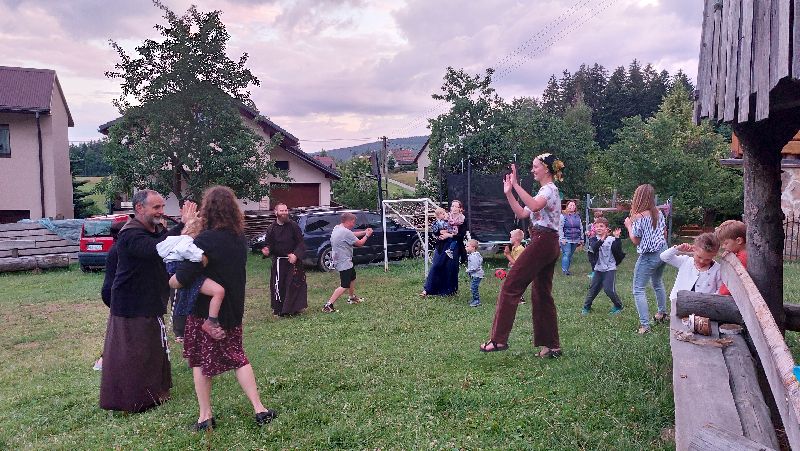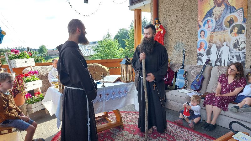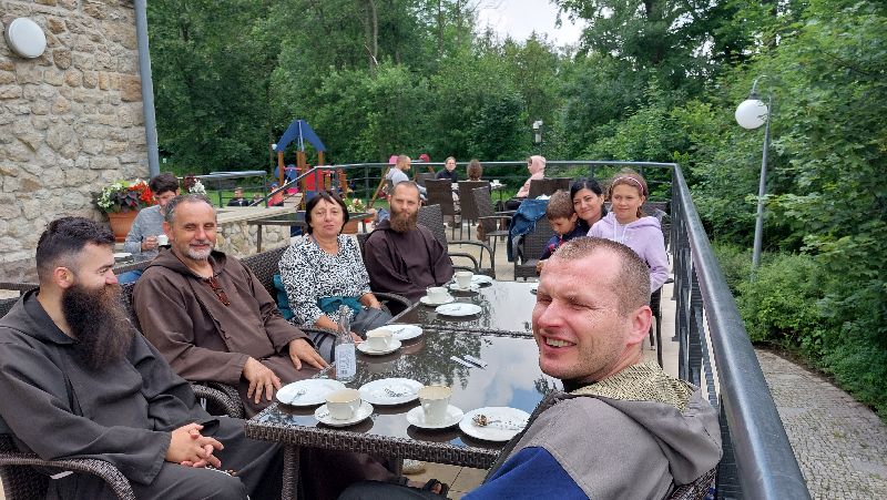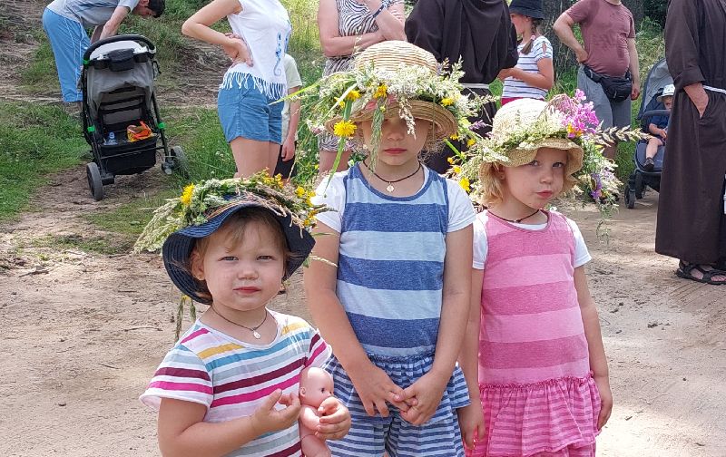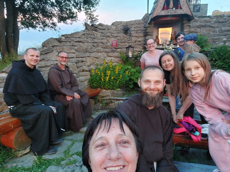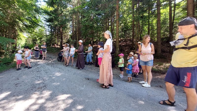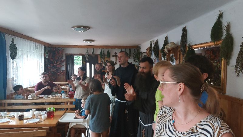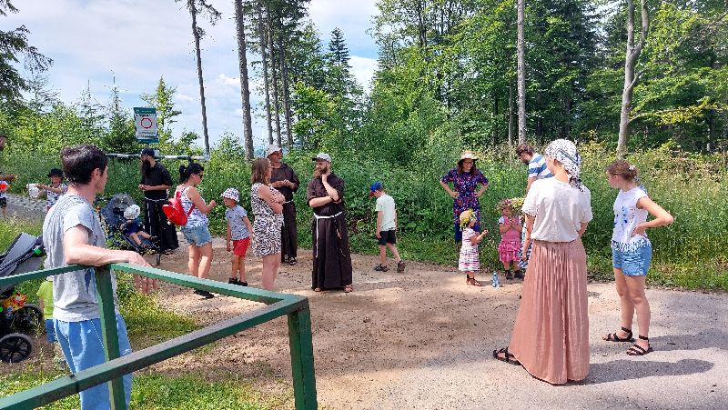 W piątek oczekiwany przez wszystkich park linowy, który dzieciom bardzo przypadł do gustu, tylko pierwszy raz z rodzicami, a potem było już super. W piątek na mszy św. małżeństwa odnowiły swoje śluby. Po głównym kazaniu br. Zbigniewa bracia kapucyni przedstawili postać Świętego Feliksa i opowiedzieli o olejku radości, którym na koniec zastaliśmy namaszczeni. Sobota. Z samego rana br. Daniel i br. Janusz zaprosili dzieci na opowieści o św. Franciszku z Asyżu, które wzbudziło wśród dzieci wielkie zainteresowanie. Rodzice natenczas dostali rozwiązanie zadania na telefonie - quizu o św. Franciszku i św. Klarze. Wybraliśmy się na jagody w kierunku źródełka, jagód w tym roku jest bardzo dużo. Wracając zatrzymaliśmy się przy kapliczce i o dziwo dzieci wraz z nami bardzo chętnie odmówiły cały różaniec. Po obiedzie wielka słodka niespodzianka, duży tort z napisem "Szczęść Boże". No i to jeszcze nie koniec, po koronce do Miłosierdzia Bożego, Jasiu świętował swoje 4 urodziny, był następny tort. Po wieczornej mszy świętej Adoracja Najświętszego Sakramentu o którą poprosiły rodziny. Na koniec zobaczyliśmy wielką kolorową tęczę.