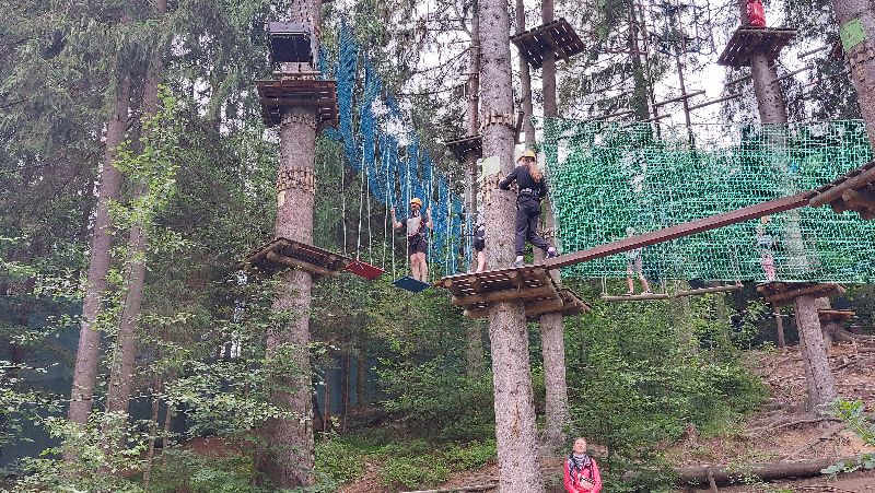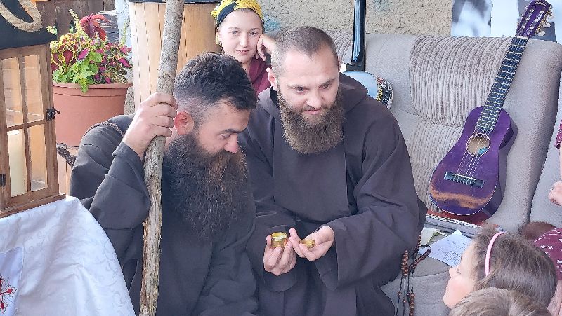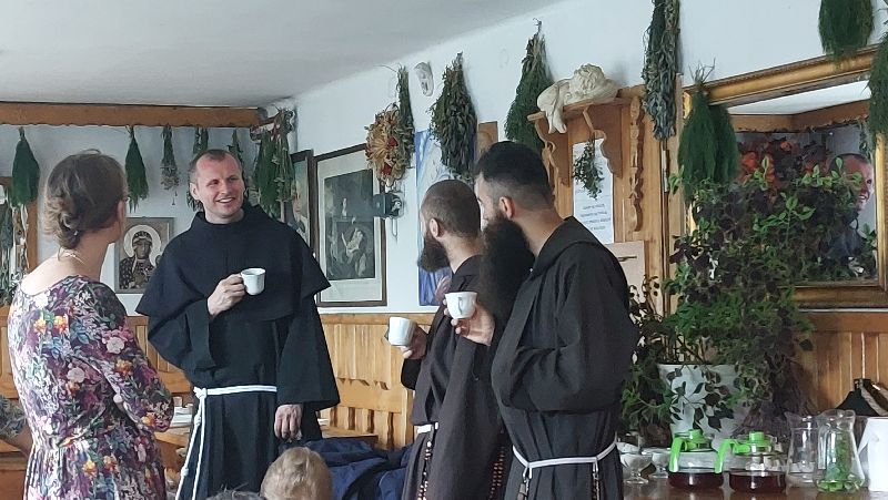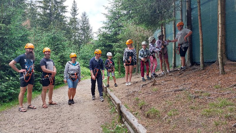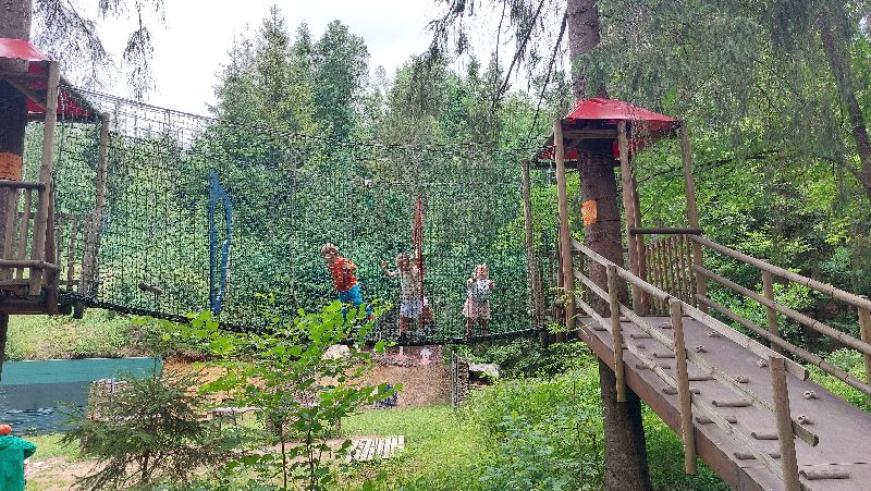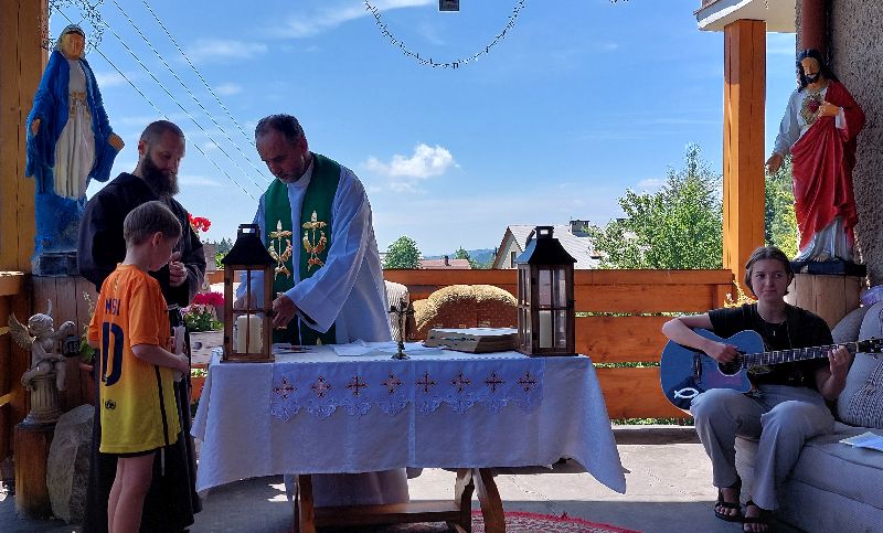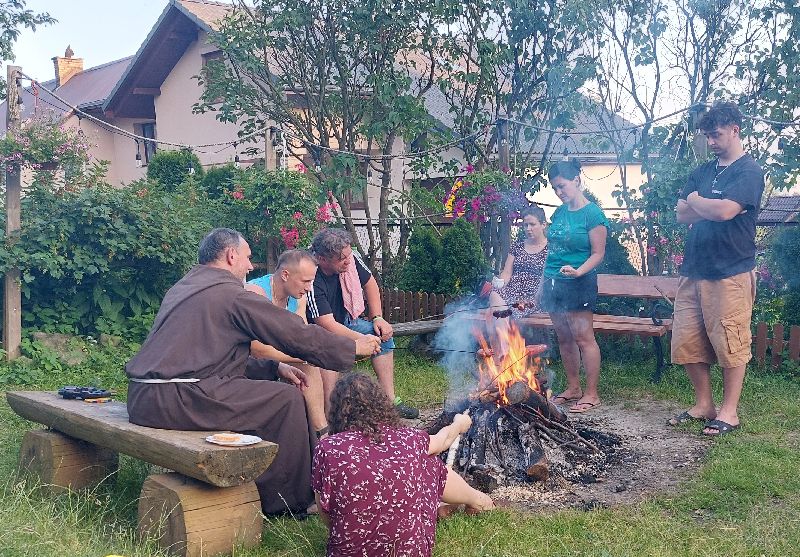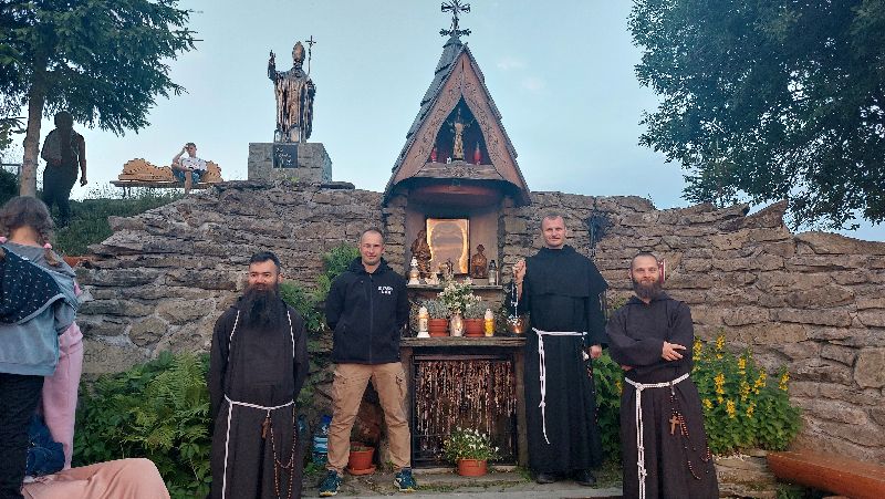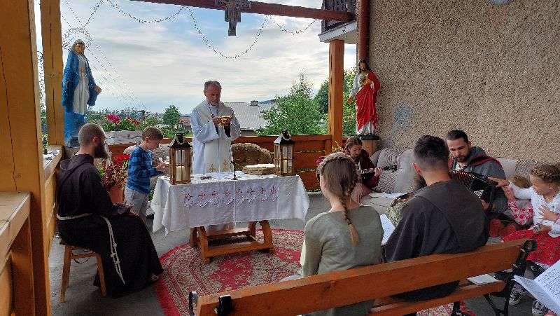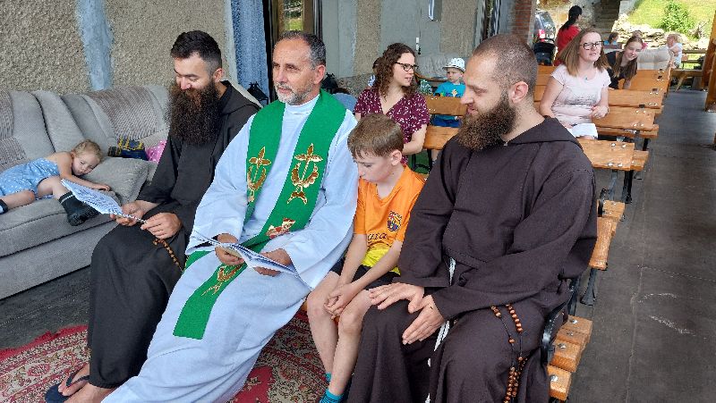 W piątek oczekiwany przez wszystkich park linowy, który dzieciom bardzo przypadł do gustu, tylko pierwszy raz z rodzicami, a potem było już super. W piątek na mszy św. małżeństwa odnowiły swoje śluby. Po głównym kazaniu br. Zbigniewa bracia kapucyni przedstawili postać Świętego Feliksa i opowiedzieli o olejku radości, którym na koniec zastaliśmy namaszczeni. Sobota. Z samego rana br. Daniel i br. Janusz zaprosili dzieci na opowieści o św. Franciszku z Asyżu, które wzbudziło wśród dzieci wielkie zainteresowanie. Rodzice natenczas dostali rozwiązanie zadania na telefonie - quizu o św. Franciszku i św. Klarze. Wybraliśmy się na jagody w kierunku źródełka, jagód w tym roku jest bardzo dużo. Wracając zatrzymaliśmy się przy kapliczce i o dziwo dzieci wraz z nami bardzo chętnie odmówiły cały różaniec. Po obiedzie wielka słodka niespodzianka, duży tort z napisem "Szczęść Boże". No i to jeszcze nie koniec, po koronce do Miłosierdzia Bożego, Jasiu świętował swoje 4 urodziny, był następny tort. Po wieczornej mszy świętej Adoracja Najświętszego Sakramentu o którą poprosiły rodziny. Na koniec zobaczyliśmy wielką kolorową tęczę.