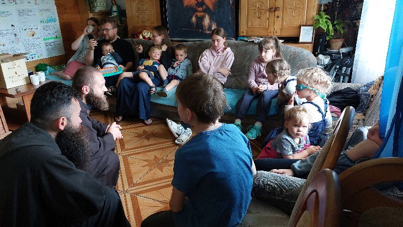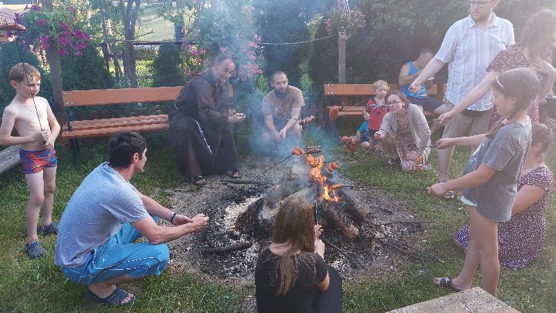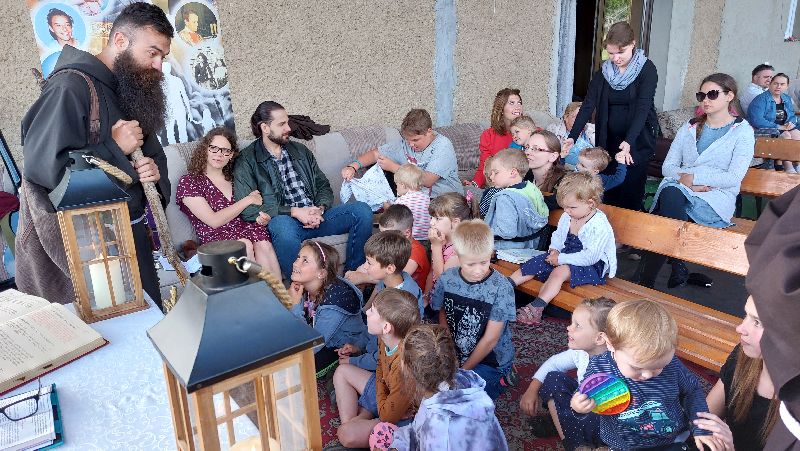 Każdy dzień rekolekcji rozpoczynał się modlitwą poranną prowadzoną przez jedną rodzinę. Chętni śpiewali wspólnie jutrznię i nieszpory. Eucharystia w tygodniu o 18:00 a w niedzielę o 12:00., codzienna Koronka do Miłosierdzia Bożego o 15:00. Zakończenie dnia apelem jasnogórskim. Bracia klerycy przywieźli ze sobą relikwie pierwszego Świętego kapucyna - Feliksa z Kantalicze. Naszą wspólnotę rekolekcyjną ożywiały najmłodsze istoty: Jaś, Pawełek, Gabryś, Anielka, Antoś, Marysia, Marta, Klara, Maja, Janek, Mateusz, Adaś, Alicja i Adam. Dzieci opanowały opiekę nad czterema kotami, codziennie zaglądali do owieczek, kaczek i kur. Już drugiego dnia można było zakosztować kąpieli pod nadzorem rodziców w stawku, a wieczorem usiąść przy ognisku zjeść przez siebie pieczoną kiełbasę i pieczone kartofelki, pośpiewać przy ognisku, a na koniec zaganiać owieczki.