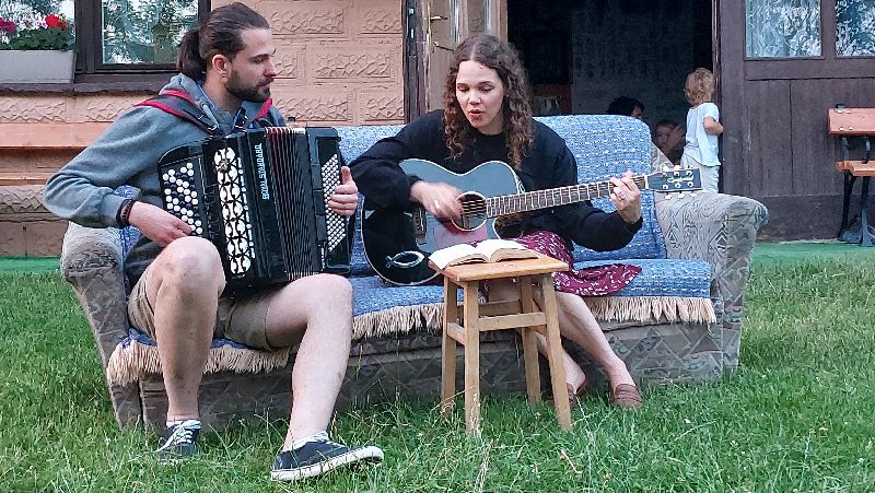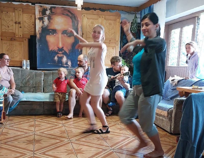 A w domu: nauka tańców, małe zajęcia plastyczne, wieczorne śpiewanie.