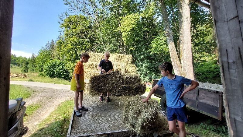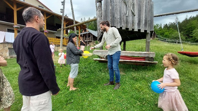 W czwartek po śniadaniu spacer, jazda na konikach i koniach, zbieranie jagód. A po obiedzie, pół godzinki dla słoninki. Później tor przeszkód dla małych i dużych, gra w piłkę. Wieczorem po mszy św. wyciszenie i Adoracja Najświętszego Sakramentu.