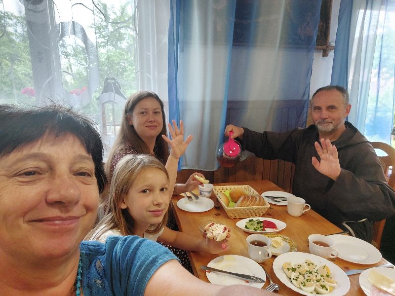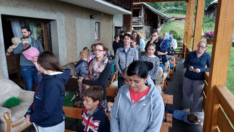 Niedziela to już ostatni dzień wszyscy wyruszyliśmy z rana na jagody. O godzinie 12:00 msza święta, potem jak zwykle bardzo dobry obiad. Wspólny pobyt zakończyliśmy Koronką do Miłosierdzia Bożego. Ciężko było się rozstać i wracać do domu. Wielkie podziękowania należą się rodzinie gospodarzy- Marioli i Władkowi Procnerom, ich synom Władkowi i Bartkowi, pomocnikom w kuchni za wyśmienite wyżywienie i rodzinne przyjęcie nas wszystkich.