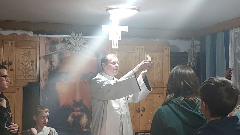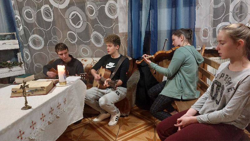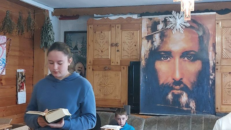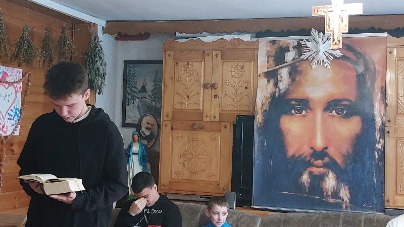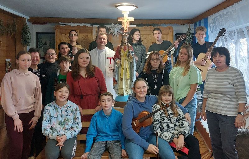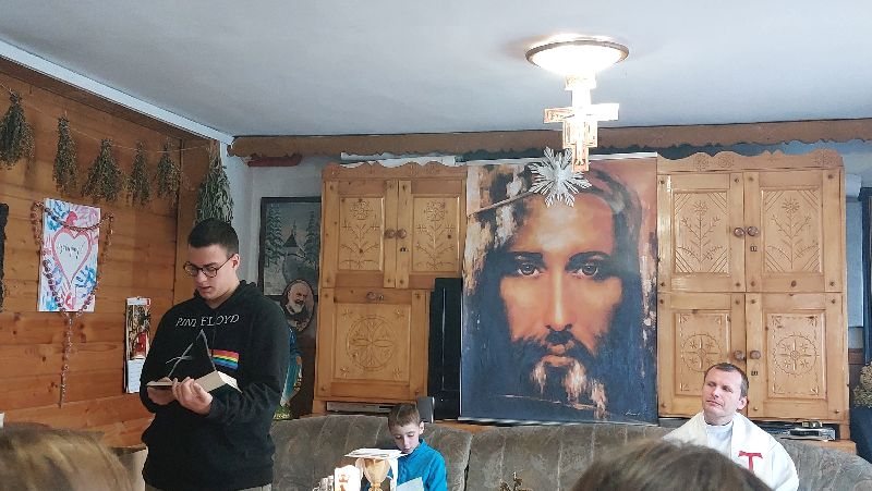 Skorzystało z niego 20 osób. Pomimo trudności z dojazdem, rozpoczęliśmy mszą świętą wieczorną. Sobota przywitała nas pięknym słońcem, oprószonymi śniegiem drzewami w pięknej bieli. Zaraz po modlitwie porannej i śniadaniu wyruszyliśmy do kościoła na Stecowkę. Pomimo dłuższego spaceru i to pod górkę, wszyscy mieli zadowolone miny. W końcu przecież udało nam się spotkać razem. Przewodniczył nam o.Roman Janusz ofm. Tam odmówiliśmy cały różaniec w intencji młodzieży, nowych powołań do trzech zakonów franciszkańskich. W niedzielę wyszliśmy jeszcze na punkt widokowy, ale już przy trochę innej pogodzie. Młodzież zaskoczyła nas swoim zaangażowaniem, to znaczy przygrywaniem nowych osób na gitarach i skrzypcach do mszy świętej i koronce do Bożego Miłosierdzia. O. Roman poprowadził dla młodzieży, konferencję o Eucharystii. W sobotę po mszy świętej wieczornej trwaliśmy na adoracji Najświętszego Sakramentu przy figurze Chrystusa Króla. Odmówiliśmy razem akt oddania Chrystusowi królowi. Nad weekendem czuwały s.Małgosia i s.Leokadia. Pokój i Dobro.