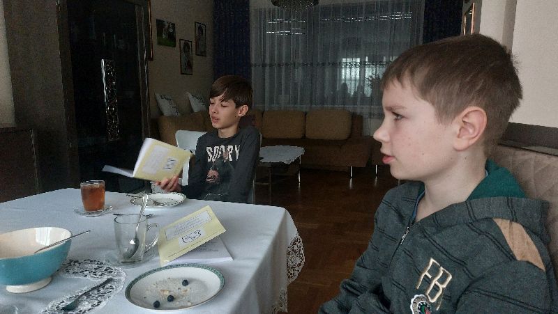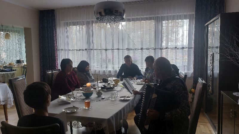 Dzisiejsze spotkanie Rycerzy było zupełnie inne, o godzinie 9:55 stanęliśmy z tyłu kościoła w naszej świątyni akurat ksiądz proboszcz czytał błogosławieństwo Ojca Świętego Franciszka na Dzień Chorych. Byliśmy umówieni na godzinę 10:00 u Bartka. Przy domu Błażej doprecyzował wejście punktualnie o godzinie 10:00 przywitała nas mama Ania, a my w delegacji: Błażej, Wiktoria z siostrą Leokadią odwiedzamy Rycerza, który od miesiąca ma unieruchomioną nogę. Bardzo miło będziemy wspominać to spotkanie, na którym byli rodzice i dziadkowie. Był to radosny czas odwiedzin: trochę Świętego Franciszka, potem pieśnią "Pan kiedyś stanął nad brzegiem" z akompaniamentem na akordeonie (pan Piotr) przeszliśmy do Dnia Chorych. Była też woda z Lourdes, każdemu potrzebna. Błażej odczytał Słowo Boże na dziś, Ewangelię o rozmnożeniu chleba i ryb, a my dzieliliśmy się swoimi talentami. Spotkanie jak zawsze przedłużyło się do godziny 12:00 i trochę jeszcze. Uzdrowienie Chorych – Módl się za nami. Pokój i Dobro.