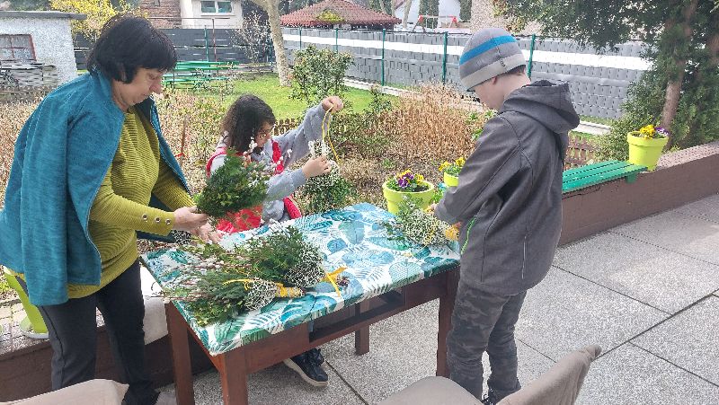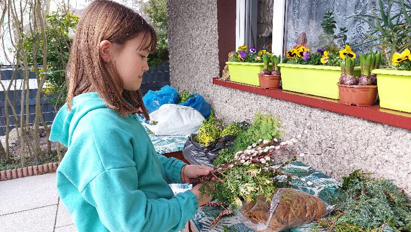 Jak co roku Rycerze Świętego Franciszka przygotowują palmy wielkanocne. Zebraliśmy się na ogródku siostry Leokadii by nauczyć się na nowo układać palmy, a później w domu je wykonywać. Na rozpoczęcie spotkania odczytaliśmy tekst Pisma Świętego mówiący o wejściu Jezusa do Jerozolimy (J.12,12-19). Nie omieszkała odwiedzić nas wiewiórka, po franciszkańsku powiedzieć Pokój i Dobro. W tym roku dochód z palm przeznaczamy na rekolekcje, naszą działalność i misje Franciszkańskie.