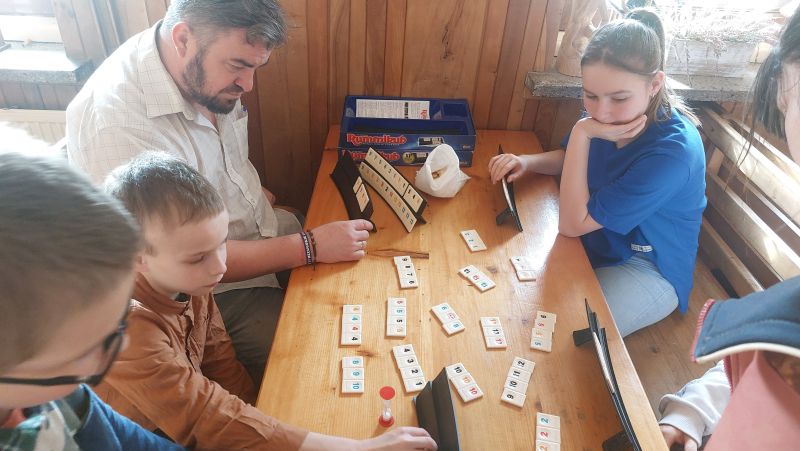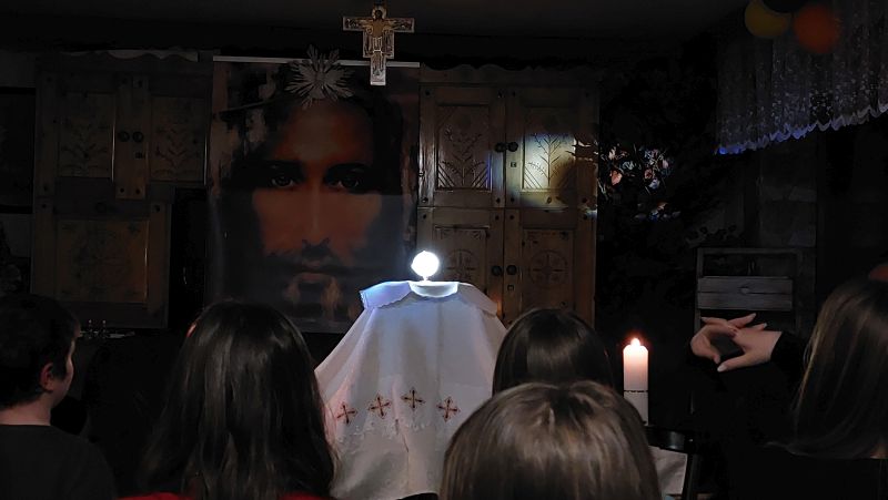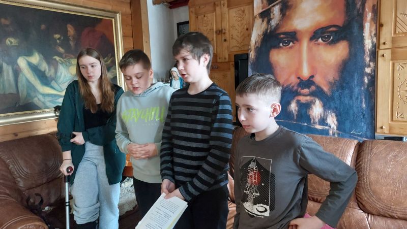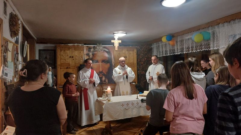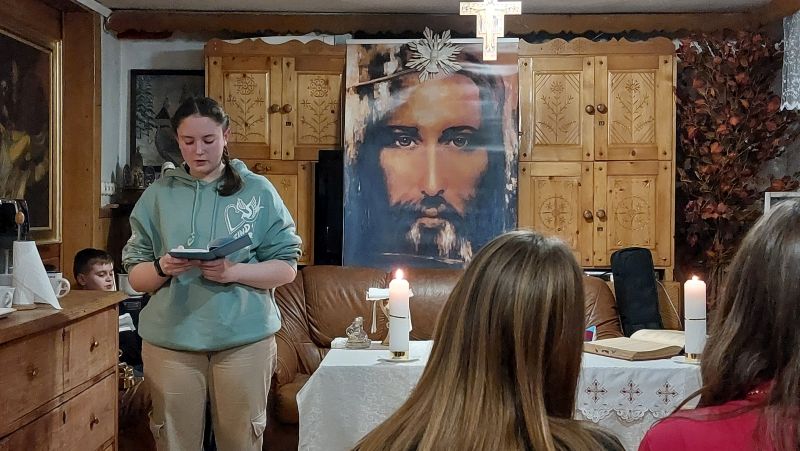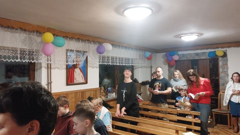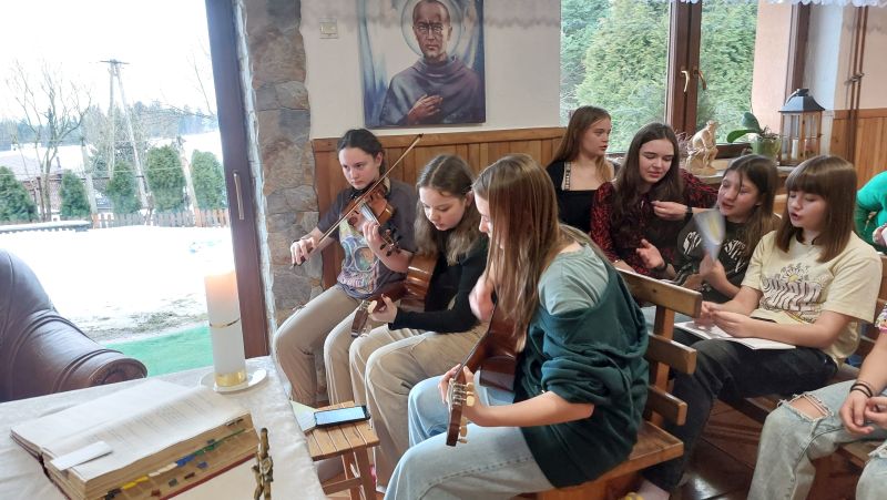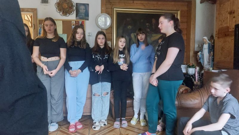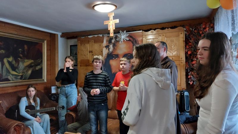 I co dalej? Codziennie spotykamy się razem o 15:00 godzinie, by zaśpiewać Koronkę do Bożego Miłosierdzia. Wieczorem bierzemy udział we wspólnej Mszy Świętej, więc najpierw wspólnie robimy przemeblowanie jadalni, chłopcy ustalają z kapłanem dyżury ministranckie, a uzdolniona muzycznie młodzież przygotowuje oprawę muzyczną przy akompaniamencie gitar i skrzypiec. Późnym wieczorem przed snem razem odmawiamy różaniec. Tym razem i dzieci, i młodzież zdecydowały się zawierzyć Matce Bożej aktem oddania Niepokalanemu Poczęciu.