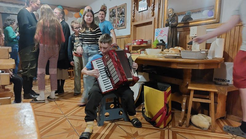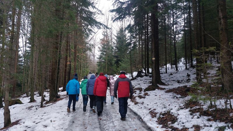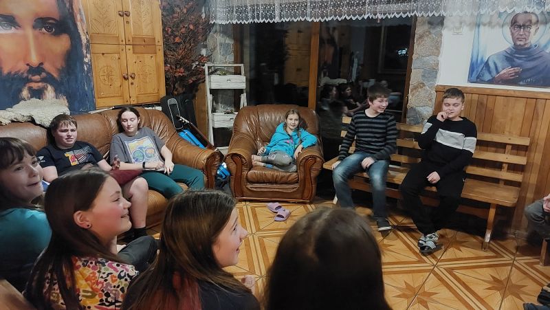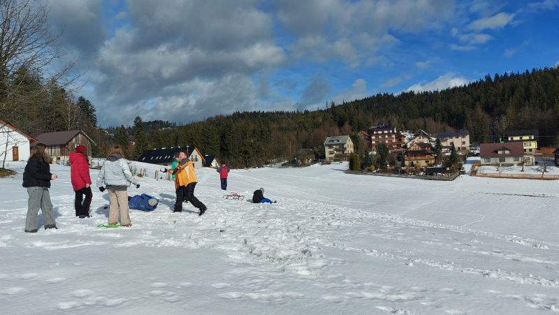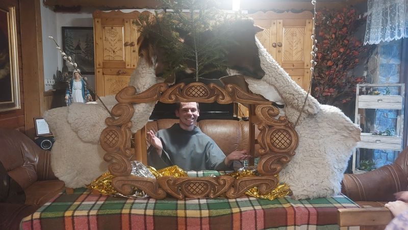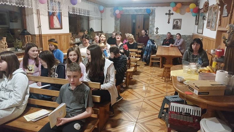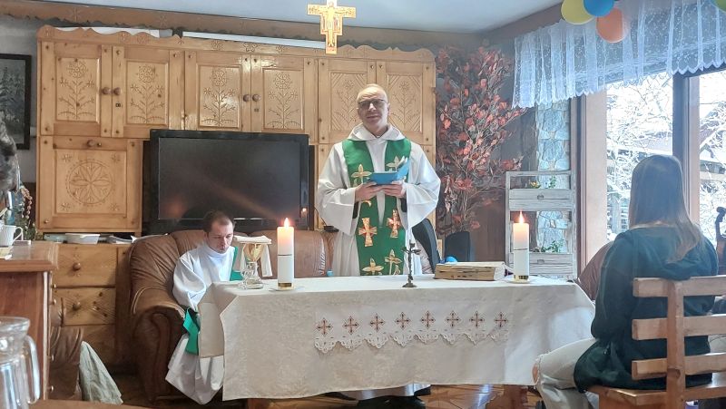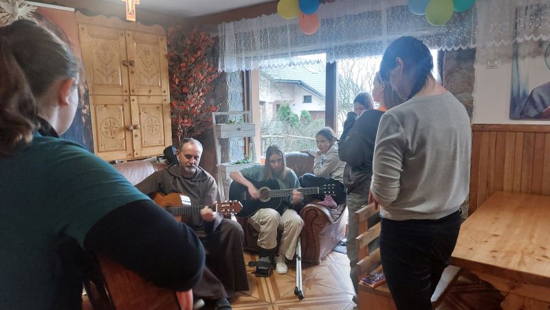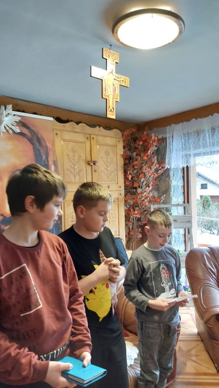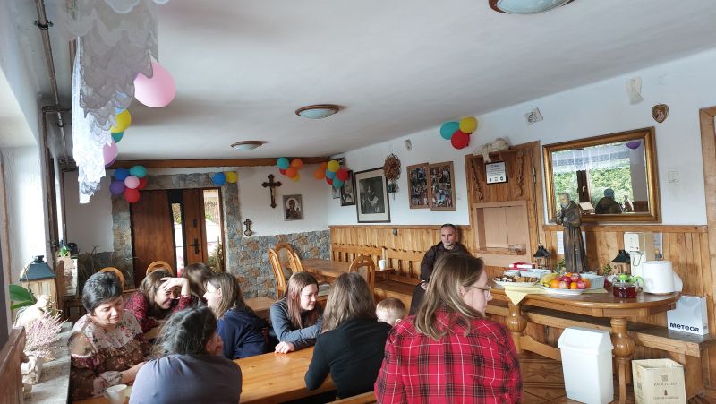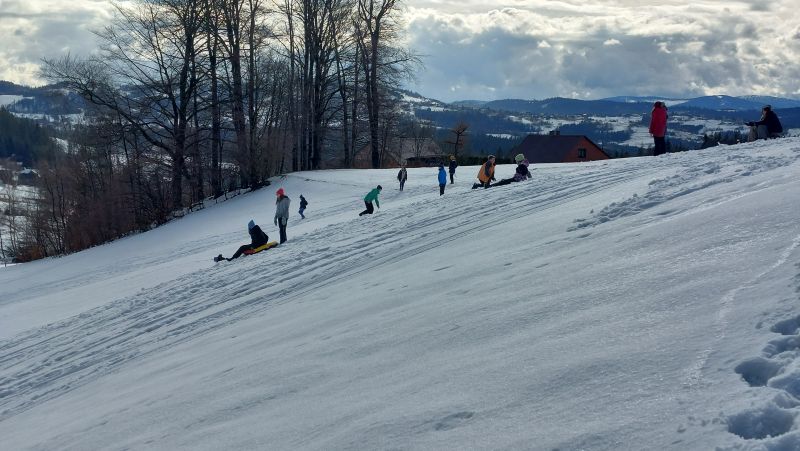 Trzy dni utrzymywał się śnieg, korzystaliśmy z ośnieżonej górki. Był kulig, spacery, nawet wyjście na basen. Odwiedziliśmy „Kurną Chatę” Kawuloka, mieliśmy okazję poznać wiele instrumentów, góralskich obyczajów. Siostra Kasia zorganizowała teatrzyk i opowieść o Franciszku i wilku, którą wszyscy wyśpiewali. Część grupy skorzystała z jazdy na nartach, z instruktorem. Były śpiewy, zabawa karnawałowa. Jednego dnia odwiedził nas o. Roman Janusz ofm conv. Jak zawsze bardzo dobre wyżywienie dzięki naszym gospodarzom Procnerom – dziękujemy, to za mało powiedzieć.